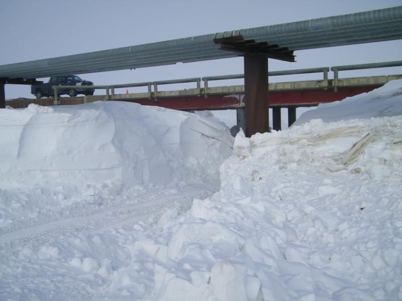 Are they digging out the snow because the spring run off is dramatic ? I mean; does it melt quickly or flood much ? Or is there just a build up of snow under the bridge from plowing ?