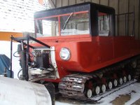 A Weasel with some extensive track work. They welded chain onto the right track where the cable laced rubber use to be at. Nice wooden doors too...