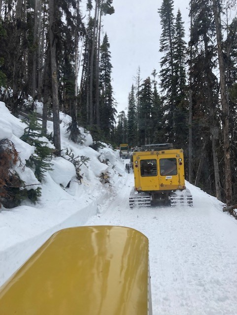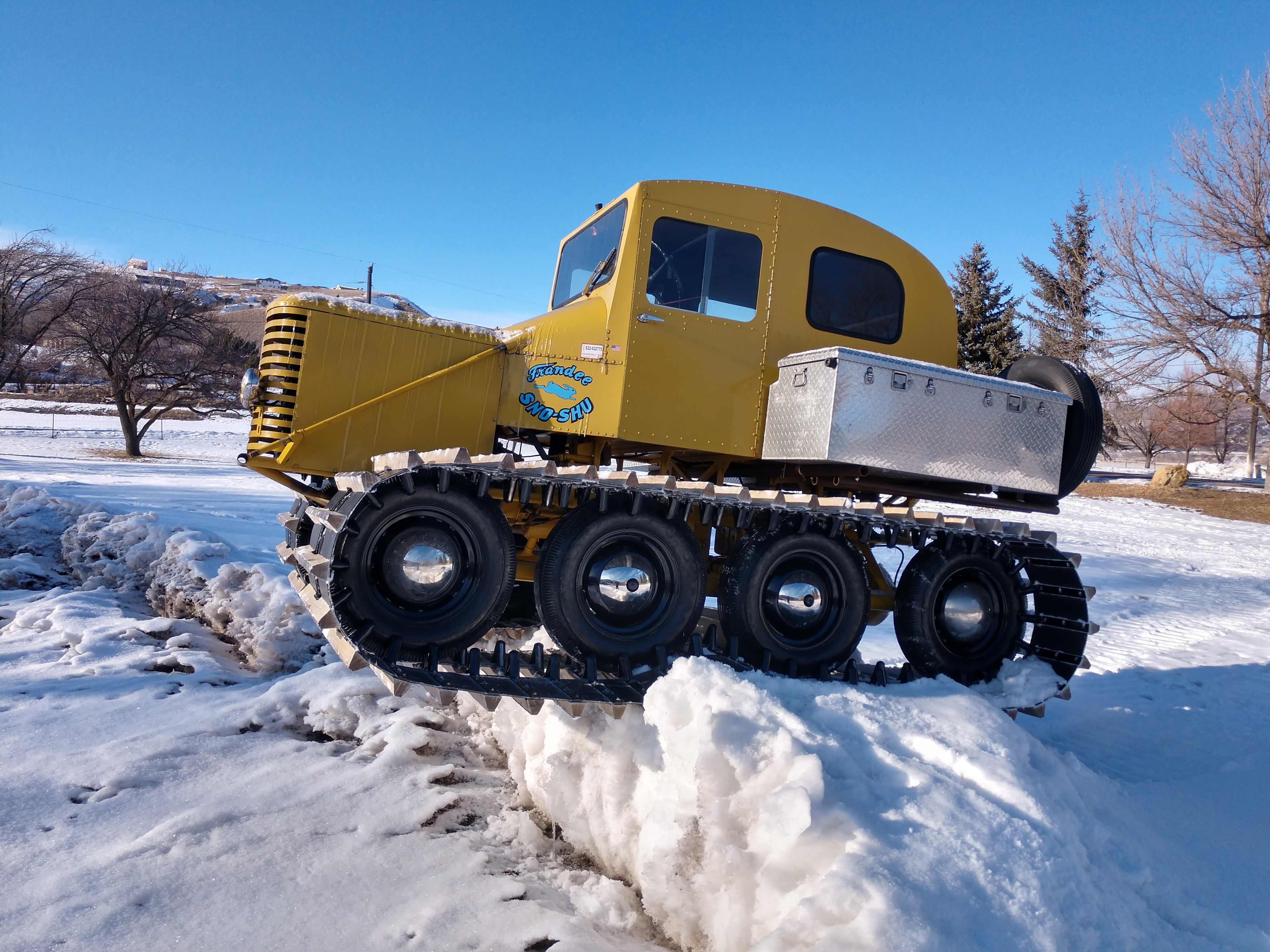 We then set off on a trail, winding down through the canyon. Turns out, the Wide Track unit really does not love groomed trails. After an hour or so, I pulled the left turn lever, and tore the front Left wheel right off the studs. Looks like that next axle set-up I built needs bigger bolts. We got some help from the guy with the groomer, (I am so sorry I can't remember your name!) and we were able to get it back on the trailer under it's own power. After a wonderful dinner, we headed home.