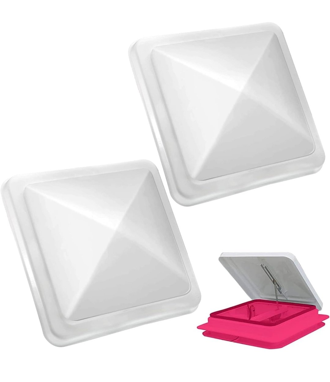 While I was up on the roof this week I installed a vent cover I had bought a while back but never installed. I ordered another one for over the bedroom as well so can leave it open in the rain and while traveling for air circulation. I also noticed that the flat vent covers were sun baked so ordered a set of those to replace. I want to let the roof coating cure good before going up to change them out and inspect the finished product up close and do any touch ups.