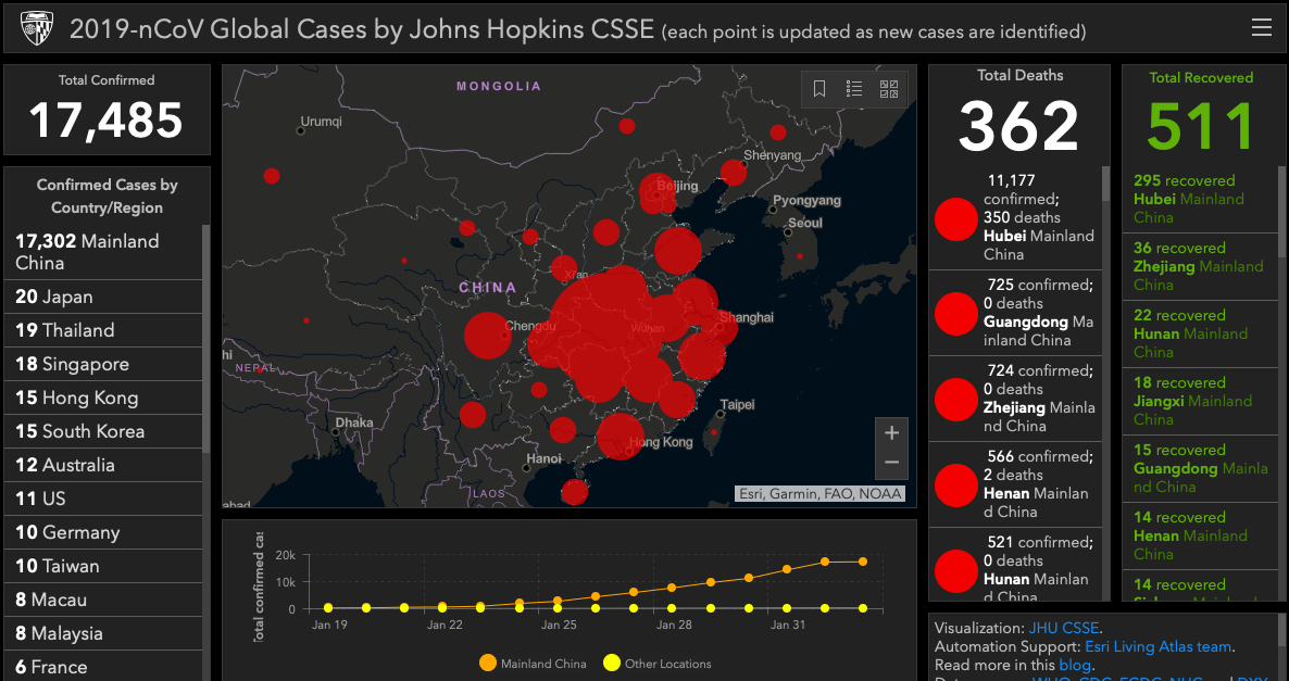 • There are currently 17,388 confirmed cases worldwide according to the latest data out of China's CDC, and 362 global fatalities
