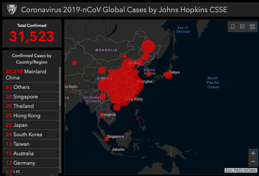 Adding the 365 international cases, means that as of Saturday, there were a total of 34,911 global cases, resulting in 724 deaths - an increase of 86 on the day, the biggest one day rises since the pandemic started - and a mortality rate of 2.1%, which is where it has been stuck for the past ten days. At this rate of increase in officially reported (which is vastly different from the actual true number) cases, the coronavirus pandemic will claim more lives than SARS in under 24 hours.
