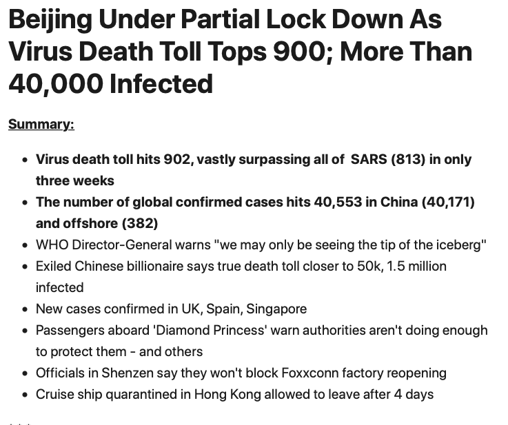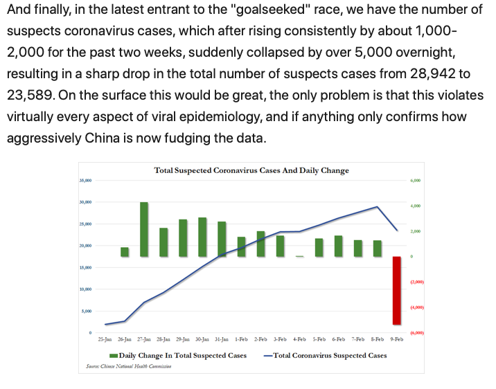 On another note, with the exception of the handful of new cases added by China yesterday, why is it that China typically reports about 3000 new cases per day? Every day is the same, roughly 3000 cases. Is it possible that they only have the capacity to process tests for 3000 cases a day? So they report what they process not what is actually the case? Just a question. No answer.