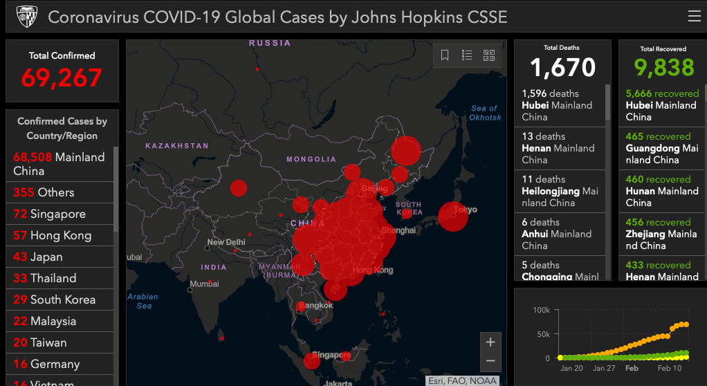 In the mean time the official count is now within grasping distance of 70,000 infected. China confirmed it can only test about 3000 people per day, so its pretty obvious that some of the financial reports indicating that the virus is far more widespread are true, and its undercounted by 10's if not 100's of thousands in China.