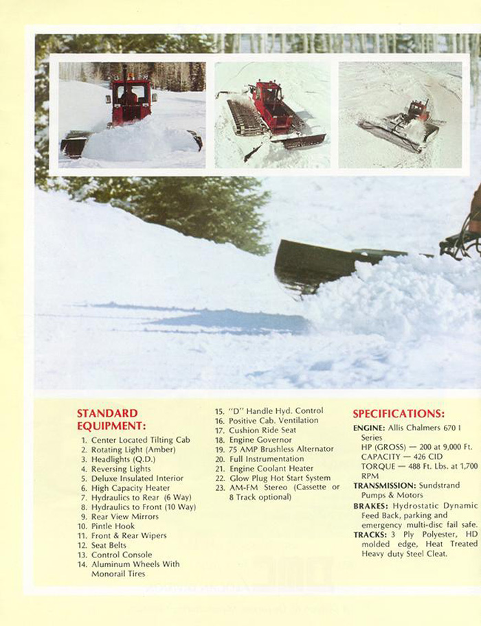 A friend of mine sent me this brochure. This is a big grooming machine, not typically what the ForumsForums members would own, but I thought it might be of interest. Most of us here on the Forums own equipment that is better suited to transportation of family and for fun. This is a workhorse of a machine designed to groom ski and snowmobile trails.