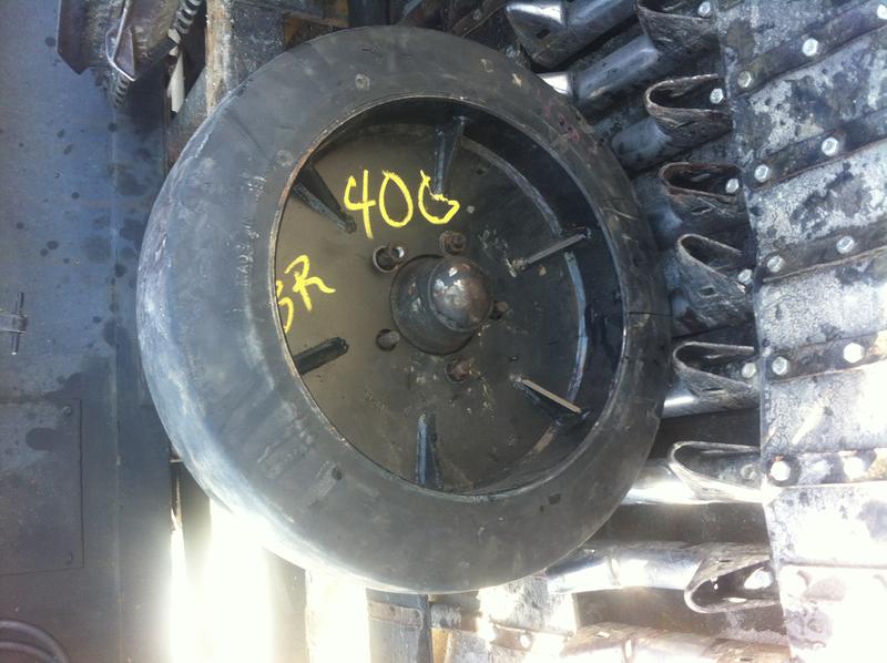 well the end of the season is here as you can see in all my mixed up pictures there was a truck that fell through the ice. I dispatched Brutis up the beach to start pulling equipment off the ice. I pulled several shacks off to the beach than had to pull stuff on the sand 15 miles back to town. on the way out I rode on the snow drift behind the bluff, but the side hill angle was too much for the equipment. to come back on. the blade was handy when I came to a wash from melt water either sand or snow I would drop the blade get some sand than carry it over the wash for a smooth crossing. the largest thing I hauled back was an 8000 pound shack on skies that had a cummins 6 cylinder motor attached to a Berkley pump. Bering sea gold was out filming again and took about 4 hours of video so I hope I get more than a few seconds this year. some how I lost some of the pics I took but at least I have some pics of the disaster that happened the next day. looking back at the pics we have the front road wheel that fell apart I believe it was the twisting of the wide tracks on drifted snow at safety that ate up both front rims. I replaced them with some nice perma groomer tires for a br400 .the holes allow for a larger wheel lug I found some half inch nuts that worked good and took off. as I pitched off the ice the second day the front end took a hard hit some thing didn't sound right as I pulled out of the water, I saw what happened when the machine started jumping and hopping the front road wheel sheared all 5 lugs at the same time, and wedged the perma groomer tire between #2 and 3 road wheel. I took a snowmachine ride to town picked up little red some 9/16 nuts and bolts went back out to break track and make repairs the good part is the 9/16 bolts fit in the stud holes nicely and I plan on the same mod to the rear sprocket. there is also a picture of Polmerankies jagernaught that one was built by formoste it now has a 7.3 idi diesel in it and I here it won't go far with out over heating the transmission if trying to pull any weight