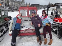 Mr Drifter, you are so correct. I apologize, many more ladies will fit on the outside of an immobile, statuesque, Sno-Cat than inside a fast moving Snow Trac.