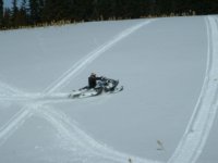 I think he was trying to do what we call carving in the snow. You go in a tight circle until you are on the edge of the track and one ski only. It is very easy to fall off or just turn over on your side when doing this routine. He fell off and the snow is probably at least 3 foot deep there. He is a little bit height challenged like his mother and his grandfather. We were all stuck at least once in the snow yesterday. That is a necessity to call it a great snowmobile day....:snow2_smi: and it was an awesome day in the snow.:thumb: :thumb: :thumb: