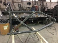 We thought of a simpler way, that we think looks better, takes less time and is more than strong enough. The other issue is the axle mounted frame is attached to the underside of the axle, so it hangs underneath and reduces ground clearance. The square tube reinforcement welded to the bottom of the outside frame members reduces that clearance even further. We took some 3” x 3” square tube and mitered the ends to intersect with the back of the “X” leg and the rear angled leg. Then its welded along all sides. We also added the square tube perpendicular to the long frame members in a similar fashion as Tucker did. (If you’re wondering why some pieces have a little surface rust while others don’t, it’s because steel is usually sold in specific lengths. We bought a 20’ stick of 3” x 2” square tube, and that wasn’t long enough. Scott had a remnant from another job (dimensionally identical) and we used part of that, rather than purchase another 20’ when we really wanted about 18”. Yes, one can buy shorter segments from a company such as Metals Supermarket, but the cost is painfully high.)