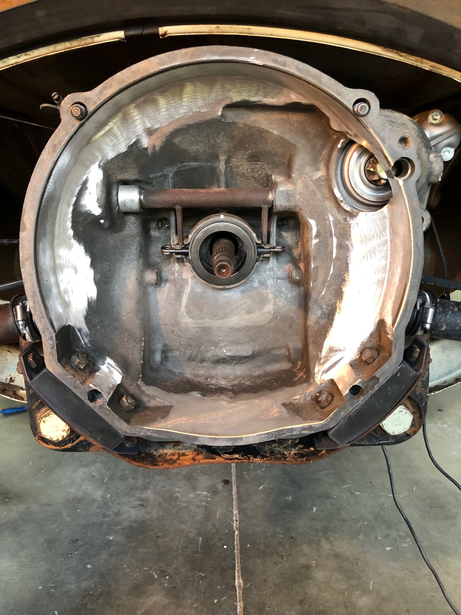 careful that sander digs in hard and fast, i did it to one of my buses a while back, a nice even grind all the way around and blend in , i got a little too close to the starter bushing on this one but i run either automatic vw starters or the aftermarket reduction unit so that doesnt matter;)