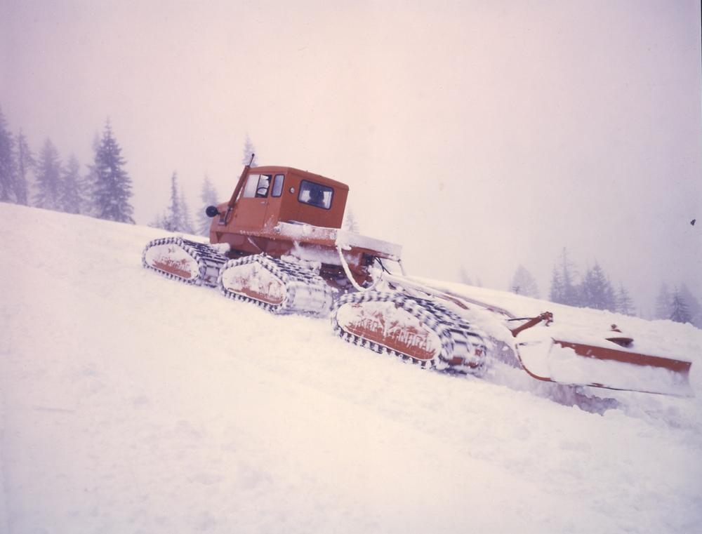 The Timberline Cat was driven up to Triangle Moraine hundreds if not thousands of times. The elevation is closer to 9,800 feet than 10,000 feet. This was the standard turn around point as it had a flat area which made unloading much easier than on the 35 degree slope of the mountain. I have been above Devil's Kitchen in a Tucker which is above 10,200 feet. Gets steep there. Now the wilderness boundary prevents machines from going this high except for rescue work.